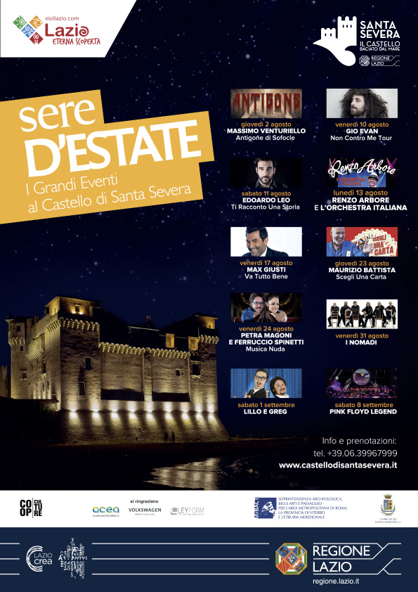 2018 SUMMER PROGRAM  TICKET SECTORS Program of Summer Events 2018 Music, theater, entertainment, dance, literature, conferences and night-time routes. The Castle of Santa Severa hosts a program of events over three months, starting from 13 July and until 29 September. SERE D’ESTATE: THE GREAT EVENTS AT THE CASTLE OF SANTA SEVERA SHOWS START AT 21.00 […]