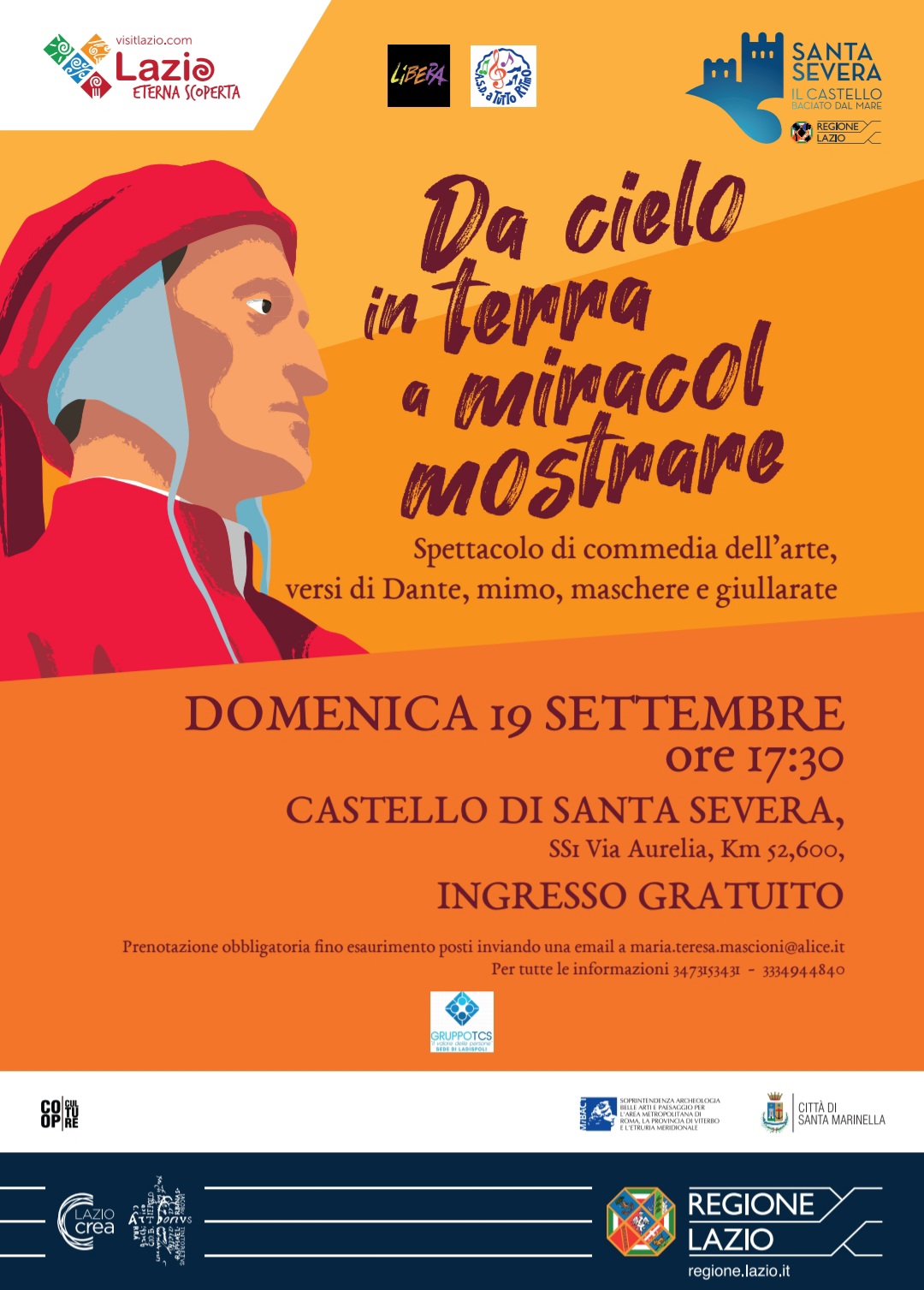 Lo spettacolo è parte del programma di eventi “A riveder le stelle” dedicati al Sommo Poeta dalla Regione Lazio, tutti gli eventi su http://www.regione.lazio.it/rl/dante/, ed è a cura dell’Asd A Tutto Ritmo, e del gruppo di danze medievali “I Virelai”.