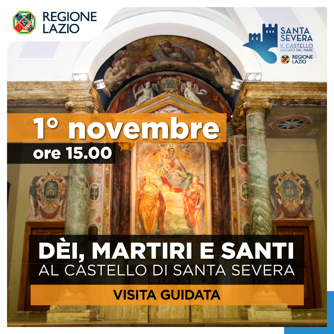 Dall’epoca dell’antico santuario di Pyrgi la storia millenaria del Castello e del Borgo di Santa Severa è ricca di racconti con protagoniste antiche divinità, martiri e santi. Un percorso tematico durante il quale sarà possibile visitare in esclusiva i suggestivi affreschi cinquecenteschi del cosiddetto Battistero, oltre i resti della basilica paleocristiana probabilmente dedicata a Santa Severa sul piazzale della Rocca del Castello.