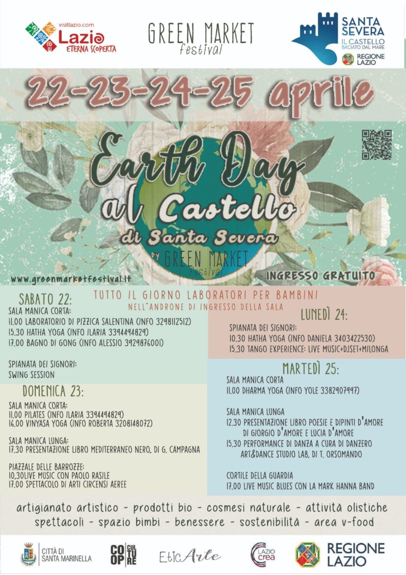 Dal 22 al 25 aprile, in occasione della Giornata Mondiale della Terra, si svolgerà l’Earth Day al Castello di Santa Severa, una manifestazione ad ingresso gratuito incentrata sulla sostenibilità ed il benessere.