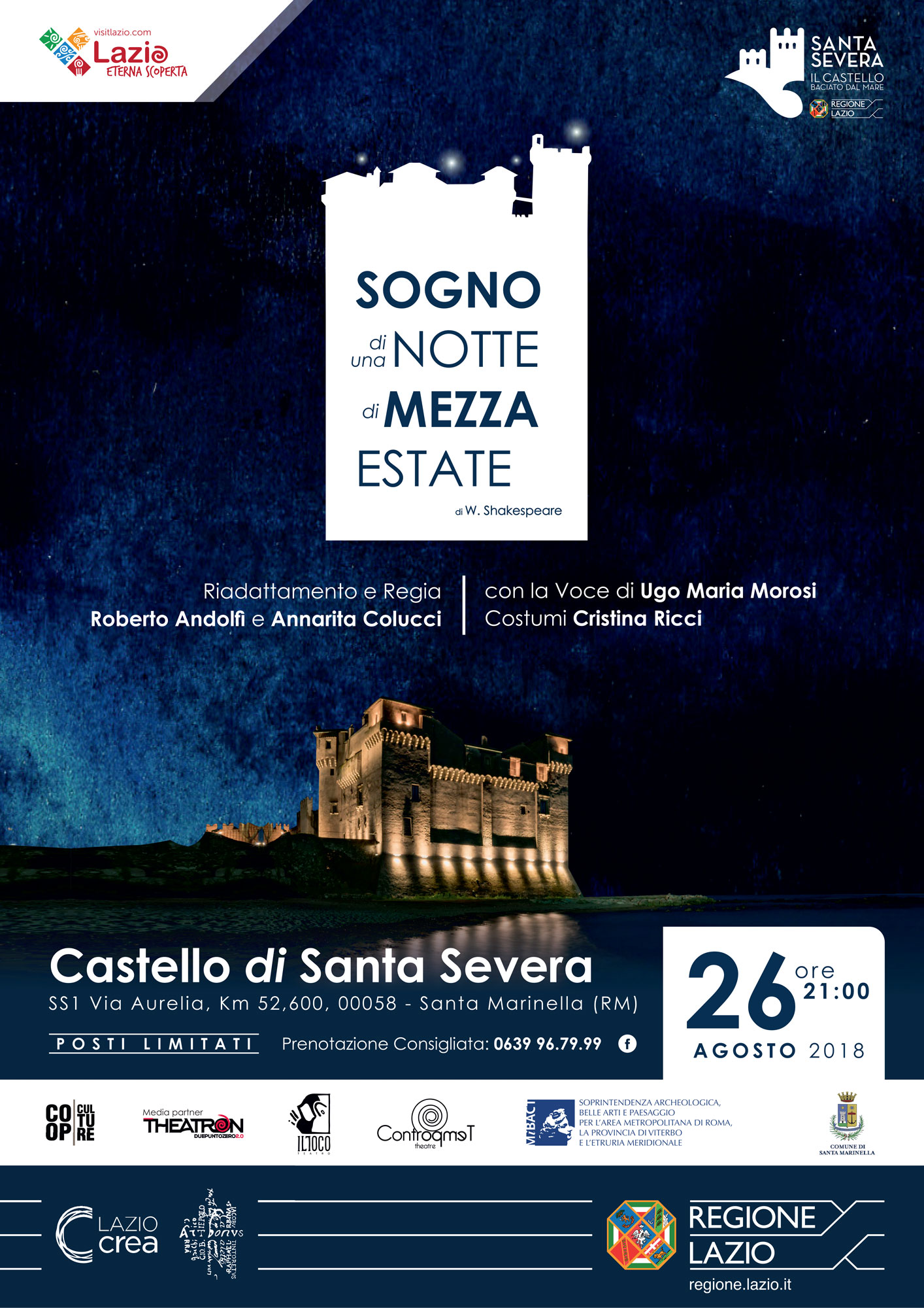 domenica 26 agosto ore alle 21:00 sulla Spianata dei Signori va in scena SOGNO DI UNA NOTTE DI MEZZA ESTATE di William Shakespeare a cura della compagnia Controtempo Theatre.