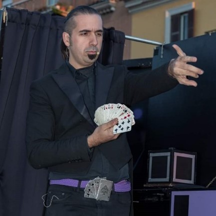 Il grande mago Pablo vi incanterà con i suoi giochi di prestigio e le fantastiche illusioni coinvolgendo grandi e piccini. La sua particolarità sono gli animali esotici che cura e addestra con amore.