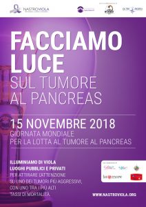 Promossa dall’Associazione Nastro Viola Onlus, con la collaborazione delle associazioni Fondazione Nadia Valsecchi Onlus, Associazione Oltre la Ricerca e Associazione My Everest Onlus, la campagna “Facciamo luce sul tumore al pancreas” riscuote ogni anno un successo sempre crescente: grazie al tam tam di pazienti e familiari e all’impegno di istituzioni pubbliche e private l’anno scorso sono stati ben 80 i comuni che hanno aderito all’iniziativa che nel mondo coinvolge luoghi suggestivi come le Cascate del Niagara o l’Opera House di Sidney.