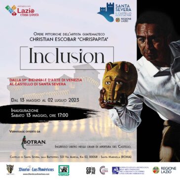 Sabato 13 maggio, fino a domenica 2 luglio, la sala Battistero del Castello di Santa Severa ospita una mostra d’arte di rilievo internazionale: “Inclusion”, opere pittoriche dell’artista guatemalteco Christian Escobar. Previsto un vernissage, con ingresso libero, alle ore 17:00 arricchito con una performance di Simone Mina, brand Ambassador del rum guatemalteco Botran, e con la presentazione di danze tradizionali dell’Associazione IK’ Guatemala.